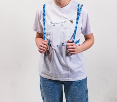 This wearable features conductive material that detects pressure in "hug-areas" on a customizable T-shirt. The Arduino is hidden in a small bag that fits in with the festival fashion. When hugged, a fan activates, blowing a refreshing breeze at the hugger